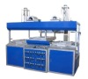 Usage: FJL-610/860BZD Series Vacuum Forming Machines are suitable for processing those reeling sheets including PVC, PS, PSP, PP, PET, PP etc. It can be used for producing different specification of plastic containers, suh as disposable fast-food containers, instant noodle bowls, western dinner plates, food packing containers (such as sugar boxes, cake boxes and etc. ), plastic containers for packing articles of daily use, hardware coverings, children's toys and etc.Character of Construction: 1. This machine has a small size, which makes it easy to operate. In a sense, it is the ideal forming machine to process little amount of plastic materials. 2. Equipped with a remote infrared heater, the temperature can be adjusted slightly so as to get an even temperature. 3. FJL-610/860BZD Series Semi-automatic Vacuum Forming Machine is easy to operate and the cost is lower. 4. Equipped with a high effective cold-water sprayer, this machine can ensure the quality of the forming and accelerate the forming speed. 5. The electronic components of the controlling part, which are manufactured abroad, can semi-automatically control the electric current and makes it easy to operate.Main Technical Parameter: Suitable material: PP.HIPS,PVC,PET Thickness range: 0.1-1.2mm Max.forming width: 610mm Max.forming length: 860mm Max.forming height: <140mm Oven heater power: 15KW Velocity of air pump: >75(m3/h) Exhausted air volume: ≤0.7 m3/h Dimension: 3000x1400x2000 Weight: 1200Kg